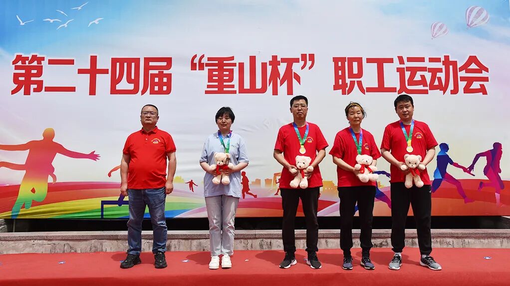 經(jīng)過激烈的角逐,我公司許澤、杜曰強、孫以志、殷曰顏、梁揮、齊峰山獲男子籃球亞軍,財務(wù)部孟敏敏獲女子乒乓球冠軍,財務(wù)部崔麗明獲女子乒乓球亞軍,9#材料項目部王榮澤獲男子乒乓球冠軍,特種裝備新能源電源技術(shù)事業(yè)部王靜、張停、劉鑫瑩、劉秀珍獲四人三足亞軍,集團領(lǐng)導(dǎo)為各獲獎選手頒獎并合影留念,第二十四屆“重山杯”職工運動會圓滿收官。